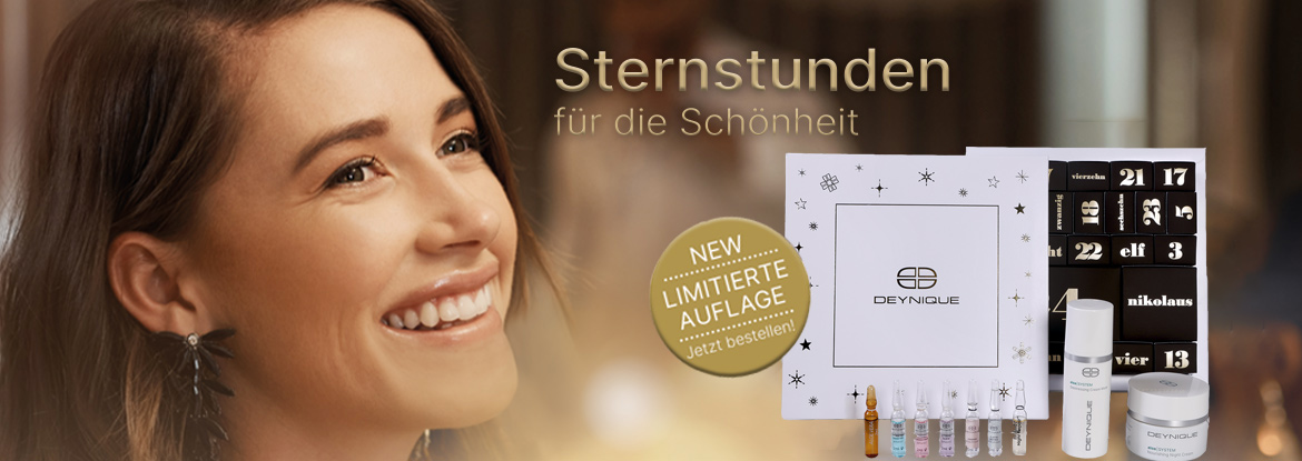 In jeder der 24 Geschenkboxen des streng limitierten DEYNIQUE Kalenders verbirgt sich eine liebevoll ausgewählte Überraschung für Ihre Haut. In den kleinen Boxen verstecken sich einige unserer Ampullenhighlights und auch auf Produkte aus dem DEYNIQUE aloe|SYSTEM dürfen Sie sich freuen.