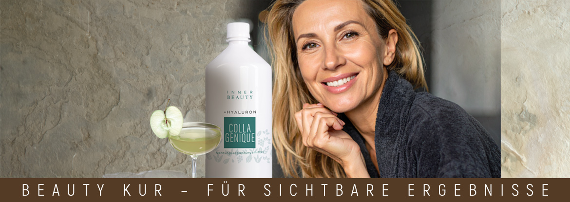 Strahlende Haut beginnt von innen! Entdecken Sie INNER BEAUTY Collagenique. Ihr Kollagen-Drink für eine schönere Haut. Tag für Tag.